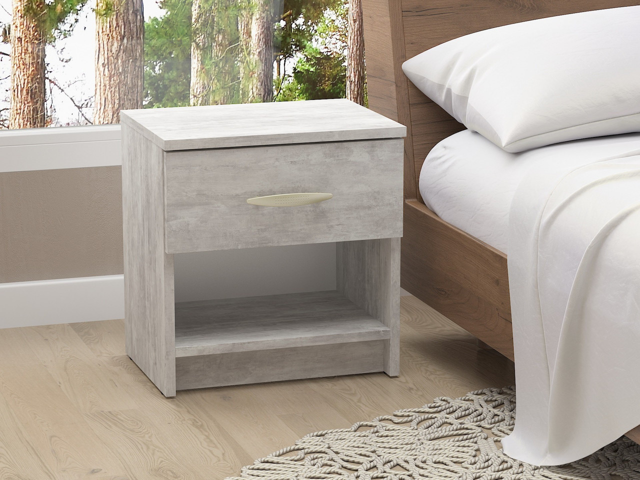 Користувальницькі характеристики. Вага в упаковці: 8,3 кг; Матеріал корпусу: ДВП; Глибина: 29 см; Висота: 41 см; Ширина: 38,6 см; Колір: Бетон; Тип: тумби; Матеріал фасаду: ДСП; Призначення: Для спальні; Поверхня: Матовий; Встановлення: Підлогові; Країна-виробник товару: Україна